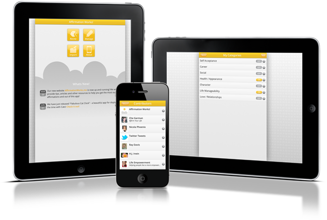 The ultimate positive affirmation companion app for your iPhone, iPad (retina display ready!), and iPod Touch.